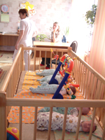 Babies in giant crib |