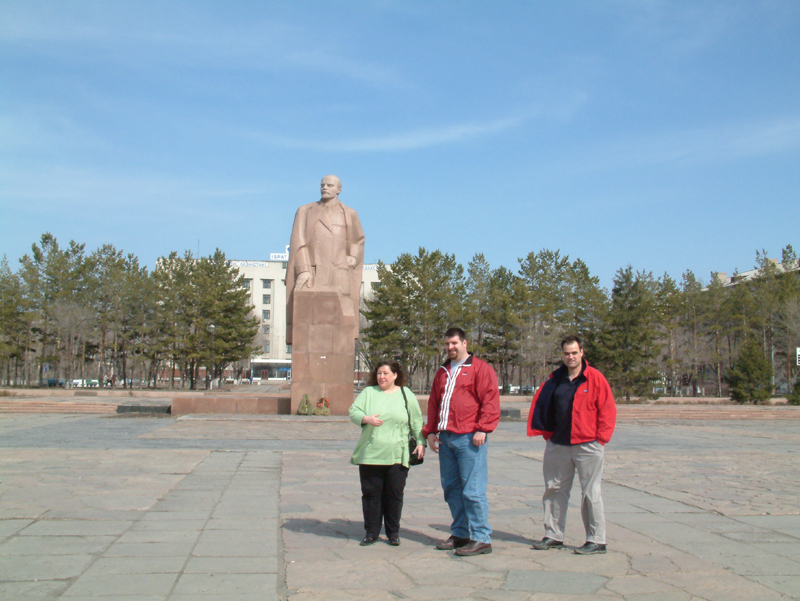 Shirley, Bill and Ken in front of Lenin